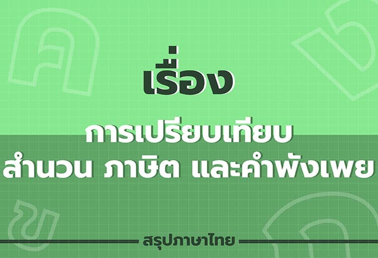 การเปรียบเทียบสำนวน ภาษิต และคำพังเพย ภาษาไทย สำนวนคืออะไร?/ ภาษิตคืออะไร? / คำพังเพยคืออะไร?… การใช้คำภาษาต่างประเทศแทนคำไทย ภาษาไทย คำทับศัพท์ / ศัพท์บัญญัติ… เจตนาประโยค ภาษาไทย แบ่งออกได้ 3 ประเภท1. ประโยคแจ้งให้ทราบ2. ประโยคถามให้ตอบ… เหตุผลกับภาษา ภาษาไทย เหตุผล/(เหตุ) = เกิดก่อนข้อสรุป/(ผล) = เกิดหลัง… กลับไปหน้าบทความหลัก TAG:TCAS, เรียนออนไลน์, เรียนTCAS, เรียนพิเศษTCAS, ติวสอบแพทย์, ติวเข้าแพทย์, ติวสอบหมอ, ติวเข้าหมอ, ติวโอเน็ต, ติวสอบonet, ติว9วิชาสามัญ, เรียนภาษาไทย, เรียนพิเศษภาษาไทย, เรียนออนไลน์ภาษาไทย, เรียนภาษาไทยออนไลน์, ภาษาไทย, ภาษาไทยออนไลน์ SHARE: Facebook Twitter Instagram Youtube