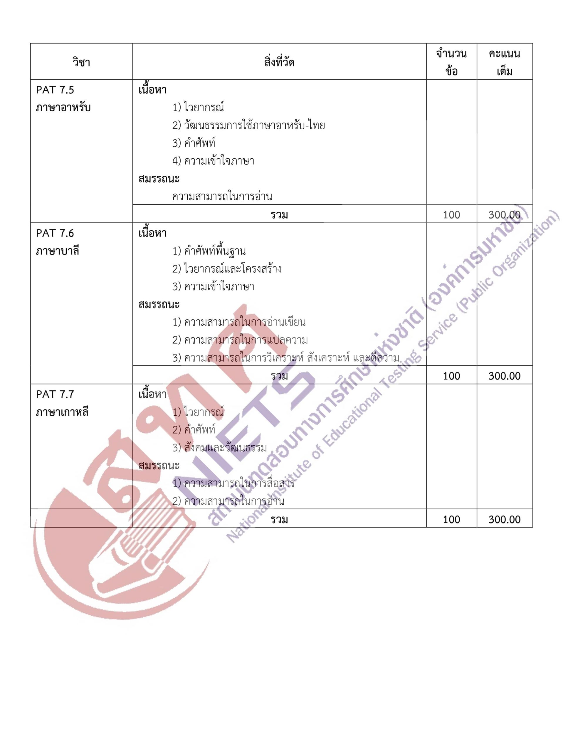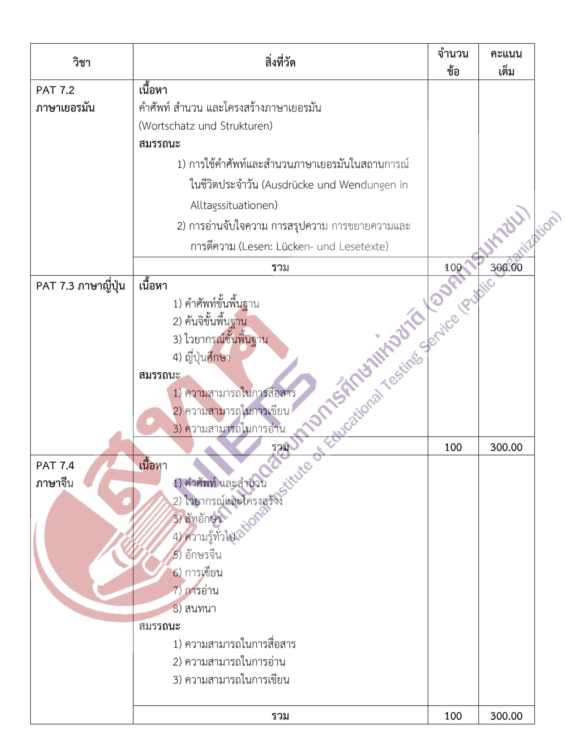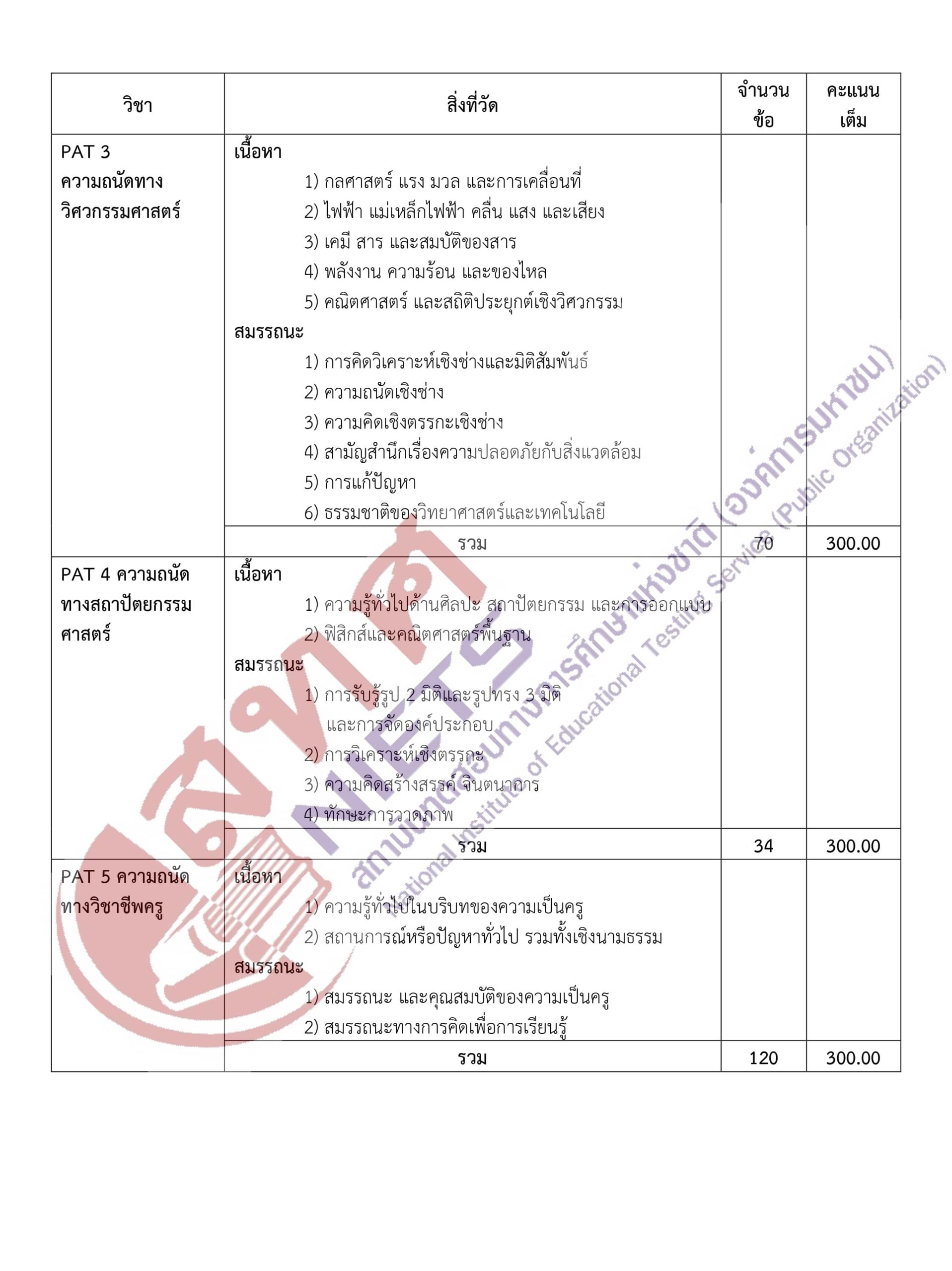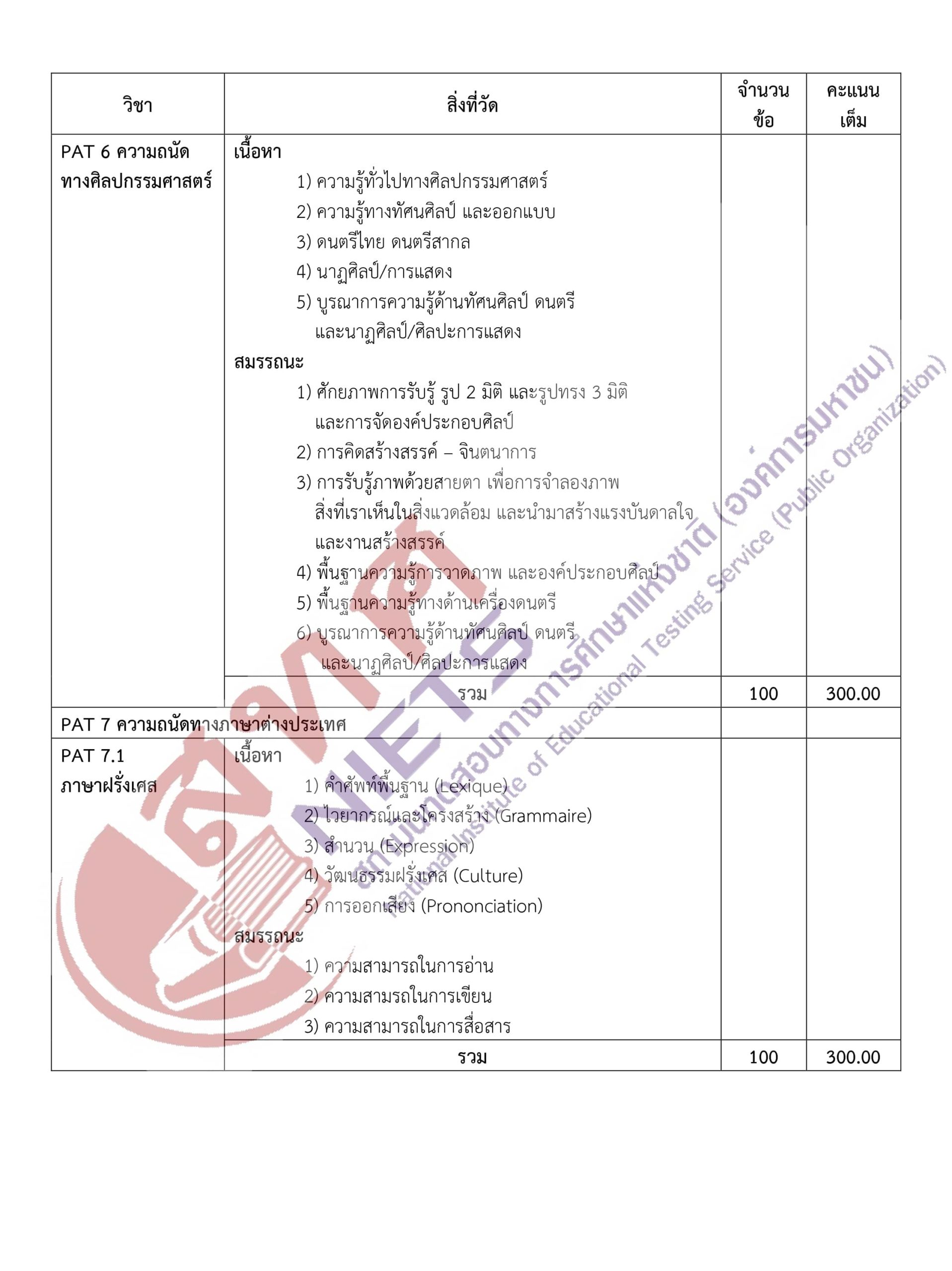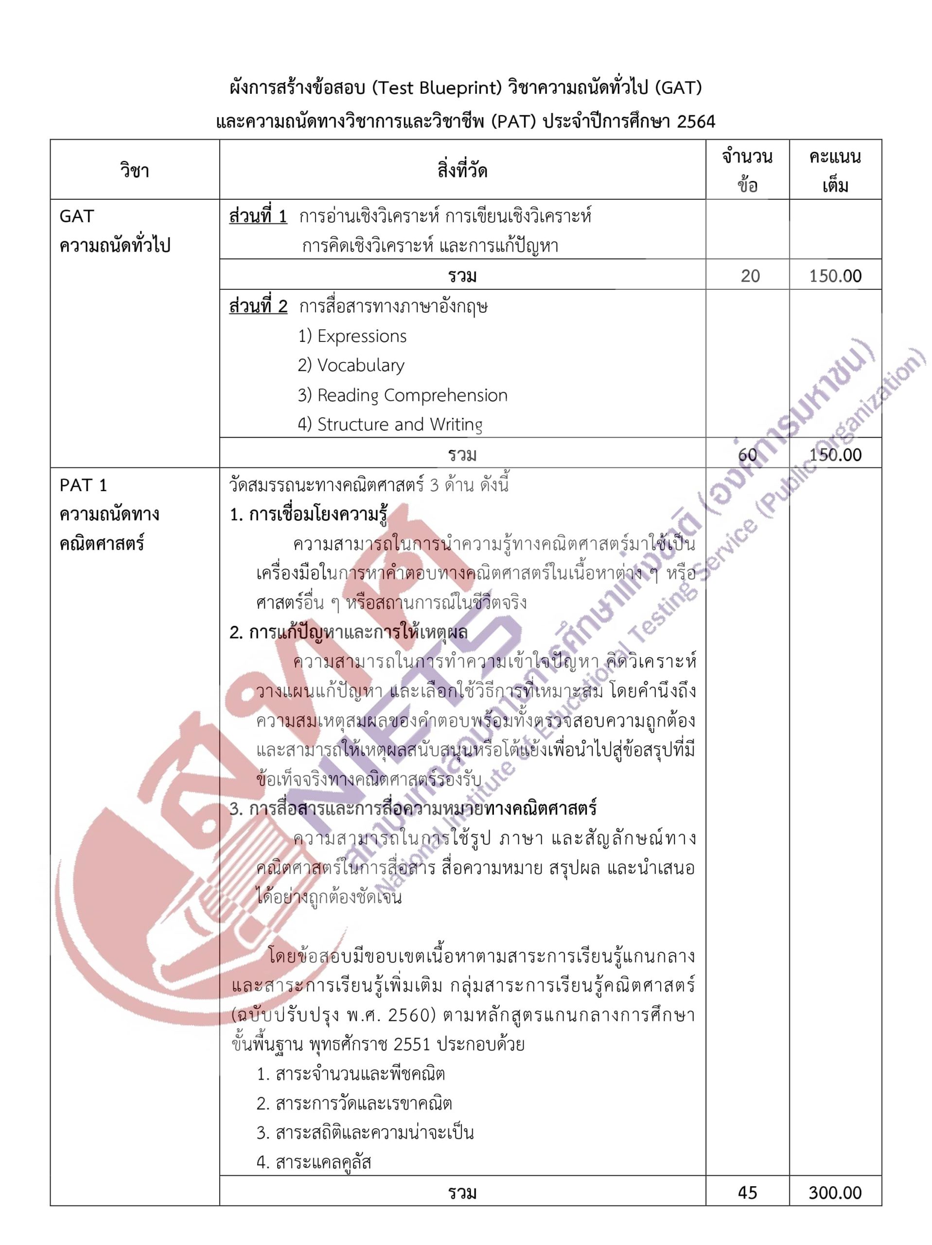 ผังการสร้างข้อสอบ (Test Blueprint) GAT/PAT 64 -คลิกที่ภาพเพื่อดูขนาดใหญ่- กลับไปหน้าบทความหลัก กลับไปหน้าคลังข้อสอบ TAG:TCAS, เรียนออนไลน์, เรียนTCAS, เรียนพิเศษTCAS, คลังข้อสอบ, คอร์สติวpat2, คอร์สpat2, GATPAT, GAT, PAT, PAT1, PAT2, PAT3, PAT4, PAT5, PAT6, PAT7, PAT7.1, PAT7.2, PAT7.3, PAT7.4, PAT7.5, PAT7.6, PAT7.7, ความถนัดทางคณิตศาสตร์, ความถนัดทางวิทยาศาสตร์, ความถนัดทางวิศวกรรมศาสตร์, ความถนัดทางสถาปัตยกรรมศาสตร์, ความถนัดทางวิชาชีพครู, ความถนัดทางศิลปกรรมศาสตร์, ความถนัดทางภาษาต่างประเทศ, ความถนัดทางภาษาฝรั่งเศส, ความถนัดทางภาษาเยอรมัน, ความถนัดทางภาษาญี่ปุ่น, ความถนัดทางภาษาจีน, ความถนัดทางภาษาอาหรับ, ความถนัดทางภาษาบาลี, ความถนัดทางภาษาเกาหลี SHARE: Facebook Twitter Instagram Youtube
