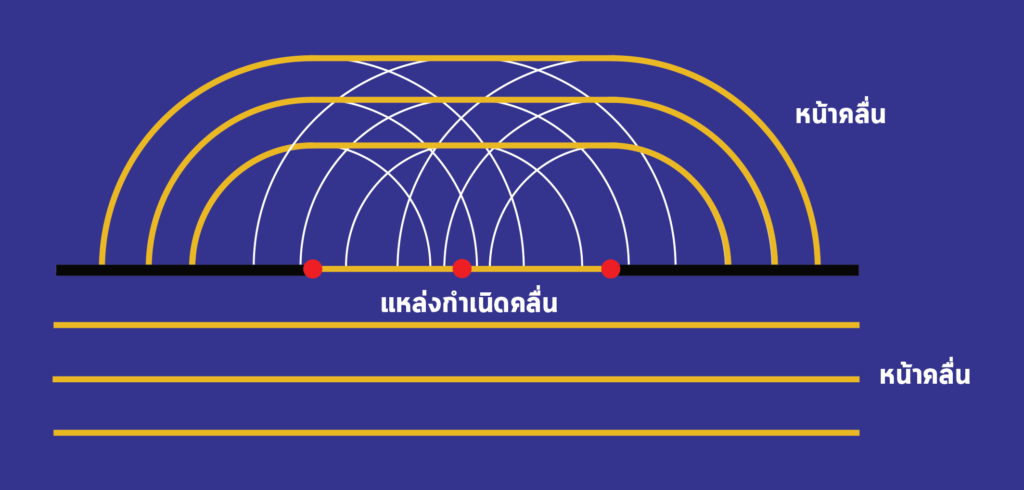 1. แต่ละจุดบนหน้าคลื่นเป็นแหล่งกำเนิดแบบจุด