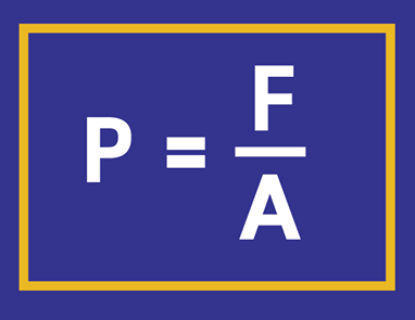 F = แรงที่กระทำต่อพื้นที่ในแนวตั้งฉาก