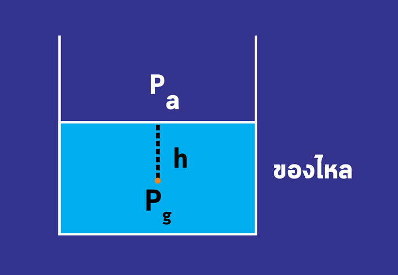 ความดันของของไหล (Pg) ที่ระดับความลึก h จากผิวของไหล