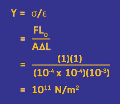 Ex. ลวดทองแดงยาว 1 m มีพื้นที่หน้าตัด 10-4 cm2 ถ้าออกแรง 1 N ดึงลวด ทำให้ลวดยืดออก 1 mm จงหาค่าโมดูลัสของยัง