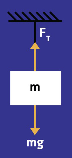 ถ้าเรามีวัตถุที่ห้อยอยู่บนเพดานด้วยเชือกเบาจะมีแรงโน้มถ่วงมากระทำต่อวัตถุนั้น ในกรณีนี้ แรงที่มาต้านแรงโน้มถ่วง คือ แรงตึงเชือก