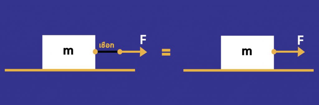 2. ขนาดของแรงตึงเชือกจะมีค่าเท่ากันทั้งเส้น