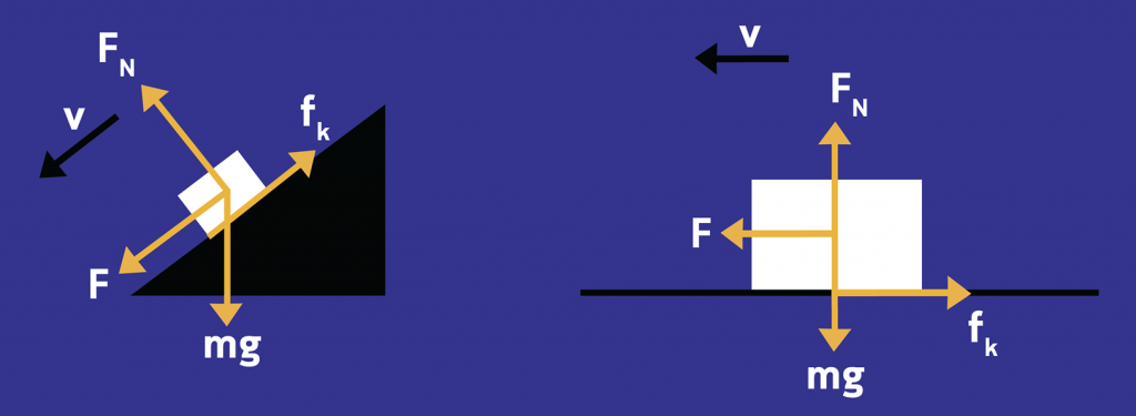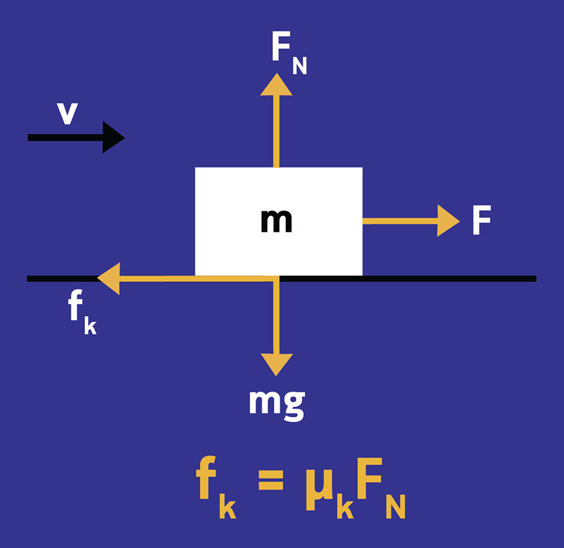 โดย μk คือ สัมประสิทธิ์แรงเสียดทานจลน์ และ μs จะมากกว่า μk เสมอ ในพื้นผิวสัมผัสเดียวกัน