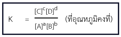 1. ค่า K ขึ้นอยู่กับอุณหภูมิ ถ้าอุณหภูมิเปลี่ยนค่า K ก็จะเปลี่ยน 2. ถ้านำ n มาคูณสมการเดิม ค่า K ใหม่จะเท่ากับ Kn 3. ถ้าเขียนสมการกลับกัน ค่า K ก็จะกลับเศษเป็นส่วน 4. ถ้าสมการมาบวกกัน ค่า K ใหม่ เท่ากับผลคูณของค่า K ของปฏิกิริยาย่อย ๆ 5. ถ้าสมการมาลบกัน ค่า K ใหม่ เท่ากับผลหารของค่า K ของปฏิกิริยาย่อย ๆ