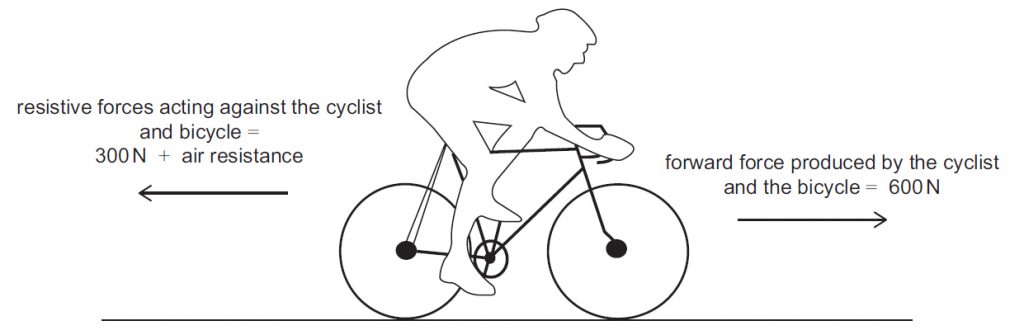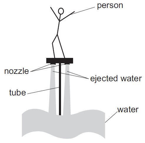 23. A water jet pack has lifted a person vertically upwards, as shown in the sketch. He is now stationary at a constant height.