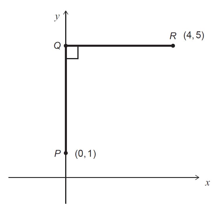 P is the point (0, 1) and R is the point (4, 5).