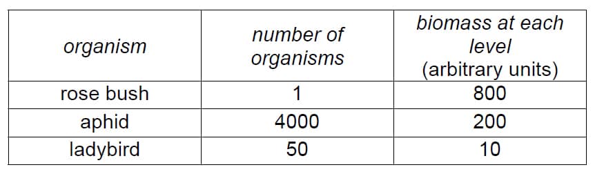 21. The table below gives some information about the number and biomass of organisms in the food chain: