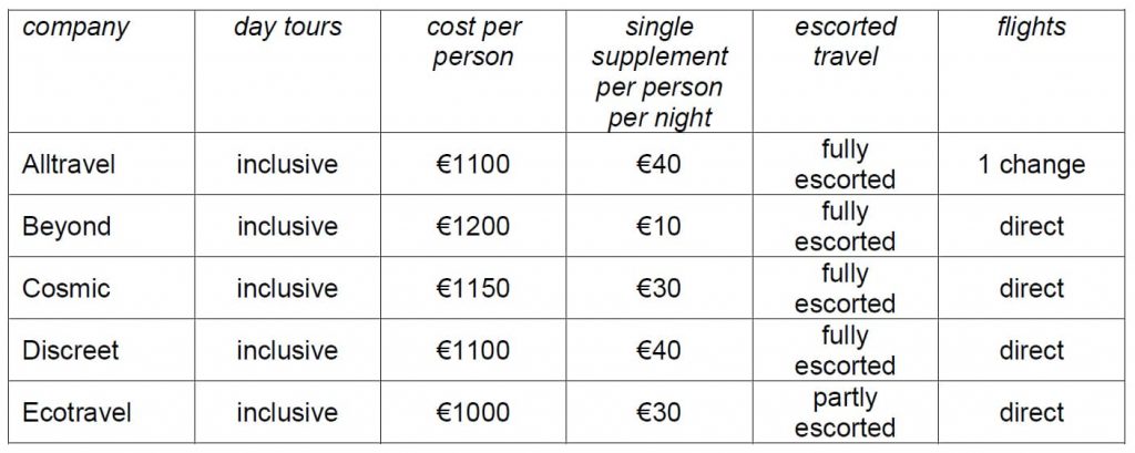 Tom has a maximum budget of €3600. All three travellers will qualify for the quoted cost per person, but Tom will also have to pay the additional single supplement.
