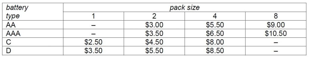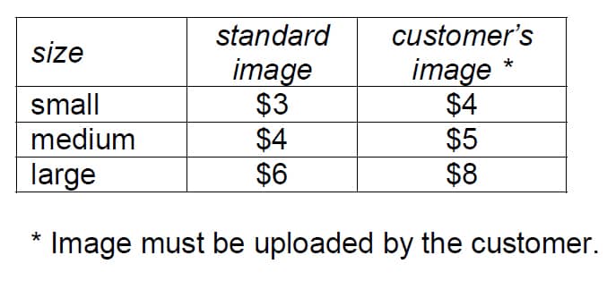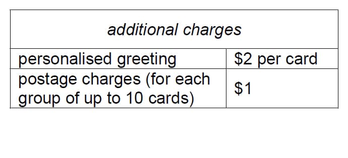 7. The prices for customised birthday cards are shown in the tables below.