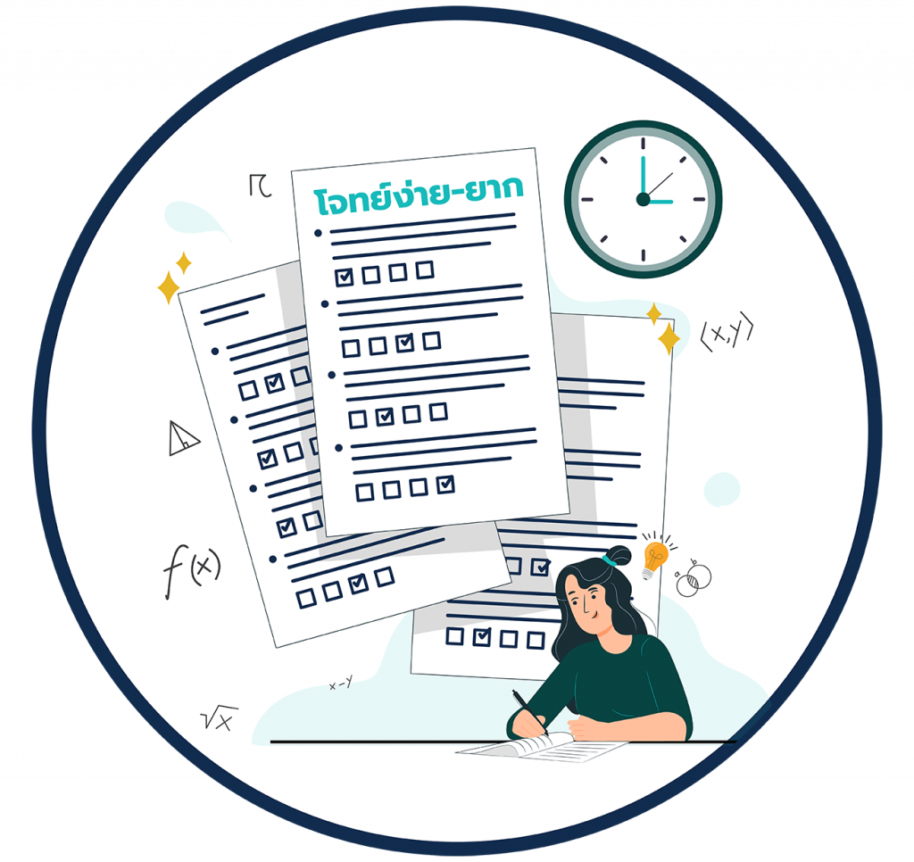 แบบฝึกหัด และโจทย์ไล่ระดับตั้งแต่ง่ายไปยาก จับเวลาทำแบบฝึกหัด พร้อมเฉลยละเอียดทุกข้อ