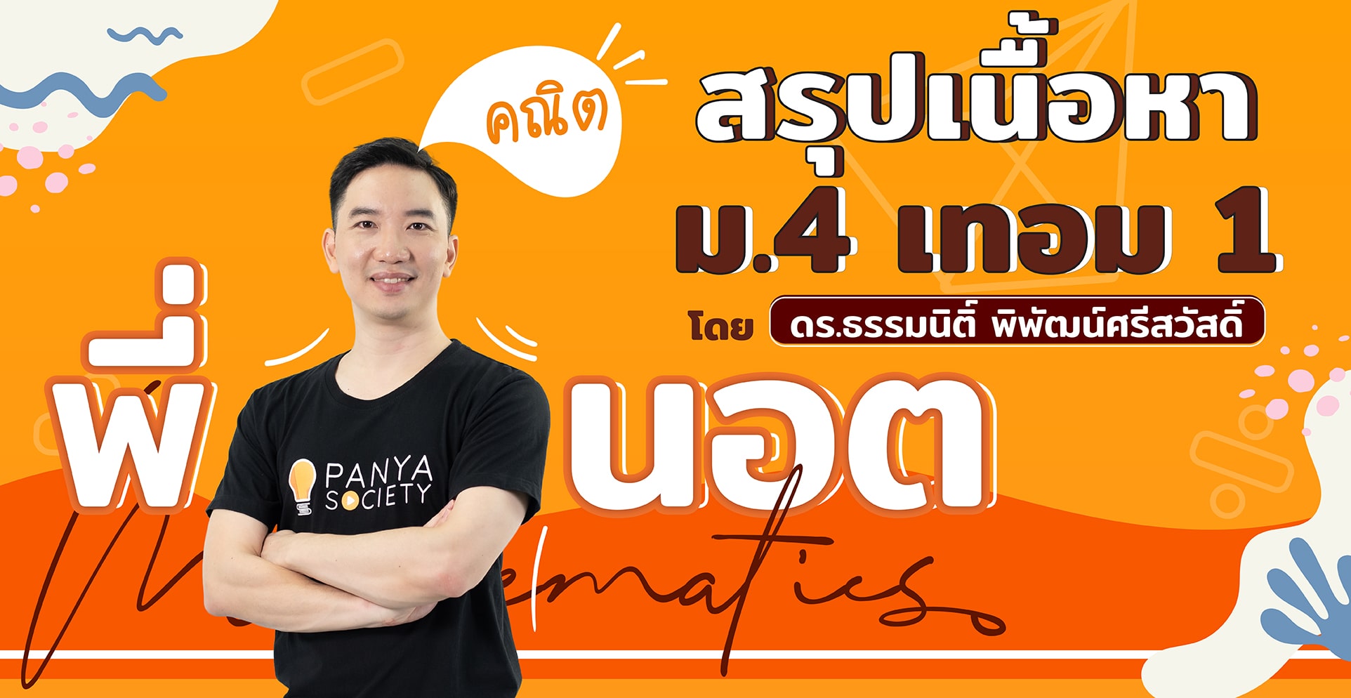 ดังนั้นพี่นอตขอแนะนำคอร์สคณิตศาสตร์ ม.4 เทอม 1 จากทาง Panya Society ที่ภายในบทเรียนจะประกอบไปด้วยเนื้อหาที่เข้มข้น มีการปูพื้นฐานตั้งแต่ง่ายไปจนถึงระดับยาก เน้นความเข้าใจ ไม่เน้นการท่องจำ พร้อมทั้งแบบฝึกหัด รวมไปถึงตัวอย่างข้อสอบจากข้อสอบจริงในการสอบเข้าระดับมหาวิทยาลัย ทำให้คอร์สนี้เหมาะกับน้อง ๆ ที่อยู่ชั้น ม.4 ที่โรงเรียนใช้หลักสูตรใหม่ (2560) ที่เบื่อกับการเรียนคณิตฯแบบท่องจำ แต่ดันทำโจทย์ไม่ได้ หรือไปเรียนพิเศษคณิตศาสตร์จากที่อื่นมาแล้วก็ยังไม่เข้าใจ ให้เพื่อนติวคณิตฯให้แล้วก็ยังปวดหัว คอร์สนี้ พี่นอต จะมาช่วยทำให้น้องเข้าใจเนื้อหา ด้วยการเรียนคณิตศาสตร์อย่างบูรณาการ ทำให้น้อง ๆ สนุกไปกับการเรียนคณิตศาสตร์ หรือแม้แต่การเตรียมตัวเพื่อสอบเข้ามหาวิทยาลัยก็สามารถใช้ความรู้ ความเข้าใจจากการเรียนคอร์สนี้ได้เช่นกัน