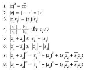 - สมบัติเชิงพีชคณิตของจำนวนเชิงซ้อน