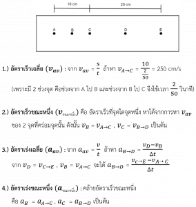 ซึ่งจะสามารถหาอัตราเร็ว และอัตราเร่งได้ ดังนี้