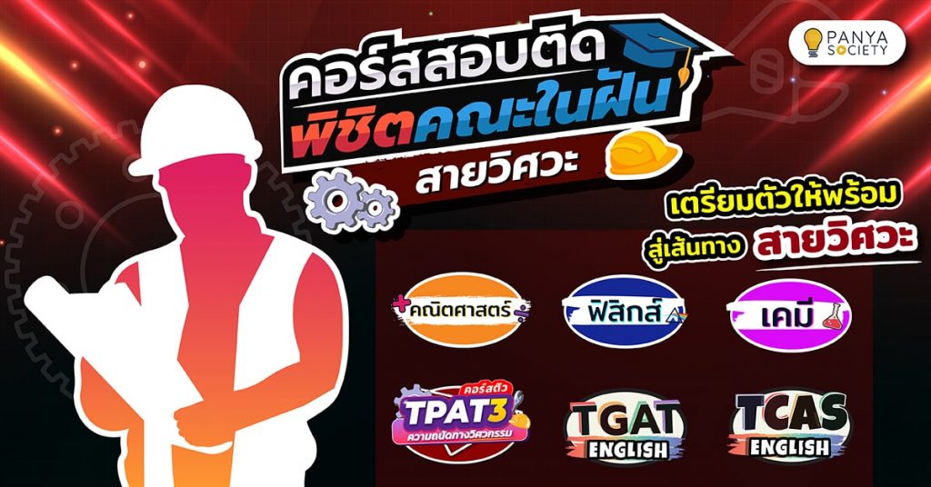 รวมบทความ TCAS TPAT3 / วิศวะ TCAS69 Exam Blueprint แนะแนว TCAS TCAS65 -TCAS68 :TPAT3 / วิศวะ: เรียน TPAT3 ที่ไหนดี? TCAS น้อง ๆ คนไหนที่อยากเข้าคณะวิศวะฯ และกำลังมองหาที่เรียน TPAT3 แต่ยังตัดสินใจไม่ได้ว่าจะเรียนที่ไหนดี พี่ขอแนะนำ คอร์ส TPAT3 ความถนัดด้านวิทยาศาสตร์ เทคโนโลยี และวิศวกรรมศาสตร์ วันนี้พี่จะพาน้อง ๆ มาดูว่ามีปัจจัยอะไรบ้างที่จะเลือกเรียนพิเศษกับ Panya Society … วางแผนเตรียมสอบ TPAT3 วิศวะฯ ฉบับเร่งด่วน TCAS วันนี้พี่ Panya Society จะมาแนะนำแผนการอ่านหนังสือวิชา TPAT3 เพื่อช่วยน้อง ๆ อ่านหนังสือได้ดีขึ้น ขอบอกเลยว่า #Dek69 ที่กำลังเตรียมสอบเข้าคณะวิศวะฯ ทุกคน จำเป็นวางแผนอ่านหนังสือให้ดี… พาส่องค่าเทอม "คณะวิศวกรรมศาสตร์" ของมหาวิทยาลัยทั่วประเทศไทย TCAS มาดูว่าคณะวิศวกรรมศาสตร์แต่ละสาขา แต่ละมหาวิทยาลัย มีค่าเทอมประมาณเท่าไร เพื่อช่วยให้น้อง ๆ เลือกมหาวิทยาลัยที่ใช่ สาขาที่ชอบ ได้ตรงใจมากที่สุด และประหยัดงบได้มากที่สุด… เรียนวิศวะที่ไหนดี? รวม Top 10 มหาวิทยาลัยที่โดดเด่นในสายวิศวกรรมศาสตร์ TCAS มาดูว่ามหาวิทยาลัยไหนโดดเด่นในสายวิศวะฯ บ้าง เพื่อช่วยให้น้อง ๆ เลือกมหาวิทยาลัยที่ใช้ สาขาที่ชอบ ได้ตรงใจมากที่สุด เพื่อโอกาสที่มากขึ้น… รวมมาให้แล้ว! คะแนนขั้นต่ำวิศวะฯ มหาวิทยาลัยดังทั่วประเทศไทย TCAS มาดูคะแนนขั้นต่ำคณะวิศวะฯ ของแต่ละมหาวิทยาลัยดัง เพื่อช่วยให้น้อง ๆ ได้รู้ว่าจะเข้าเรียนวิศวะฯ ต้องสอบได้กี่คะแนน จะได้คำนวณคะแนนกันได้ และทำให้สอบติดวิศวะฯ ได้ง่ายขึ้น ถ้าพร้อมแล้ว เริ่ม!!!… รวมเกณฑ์การคิดคะแนนวิศวะฯ ของแต่ละมหาวิทยาลัย ใช้สัดส่วนเท่าไหร่มาดูกัน! TCAS เกณฑ์การคิดคะแนนวิศวะฯ ของแต่ละมหาวิทยาลัย เพื่อช่วยให้น้อง ๆ ได้รู้ว่าจะเข้าเรียนวิศวะต้องสอบอะไรบ้าง และวิชาไหนที่ควรให้ความสำคัญมากกว่ากัน ทำให้สอบติดวิศวะฯ ได้ง่ายขึ้น… อยากเรียนวิศวะ สอบอะไรบ้าง TCAS อยากเข้าวิศวะต้องสอบอะไรบ้าง / วางแผนเตรียมตัวให้สอบติด / คอร์สแนะนำสอบติดวิศวะ… วิศวะ มีกี่สาขาอะไรบ้าง TCAS 10 สาขาน่าสนใจของวิศวกรรม.. TCAS69 TGAT เรียนที่ไหนดี? TCAS แนะนำคอร์ส TGAT ที่ดีที่สุดสำหรับสอบเข้ามหาวิทยาลัย… TPAT3 เรียนที่ไหนดี? TCAS แนะนำคอร์ส TPAT3 ที่ดีที่สุดสำหรับสอบเข้าคณะวิศวกรรมศาสตร์ และวิทยาศาสตร์… คณิต A-Level เรียนที่ไหนดี? TCAS แนะนำคอร์สคณิตศาสตร์ที่ดีที่สุดสำหรับสอบเข้ามหาวิทยาลัย… เคมี A-Level เรียนที่ไหนดี? TCAS แนะนำคอร์สเคมีที่ดีที่สุดสำหรับสอบเข้ามหาวิทยาลัย… ฟิสิกส์ A-Level เรียนที่ไหนดี? TCAS แนะนำคอร์สฟิสิกส์ที่ดีที่สุดสำหรับสอบเข้ามหาวิทยาลัย… สรุป TGAT แบบเข้าใจง่าย TCAS สรุป TGAT เพื่อจะได้เป็นการทบทวนเนื้อหา และเก็บ