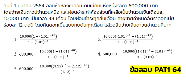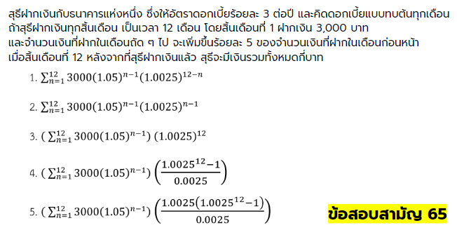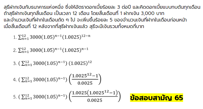 ตัวอย่างข้อสอบดอกเบี้ยทบต้น