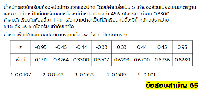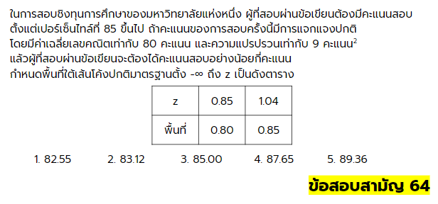 ตัวอย่างข้อสอบการแจกแจงปกติ