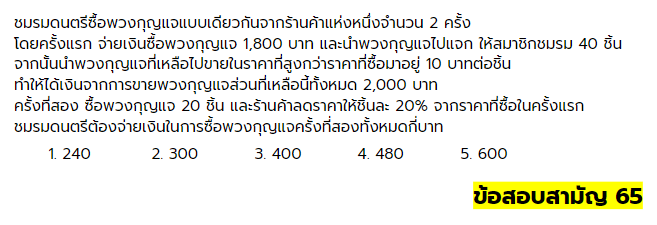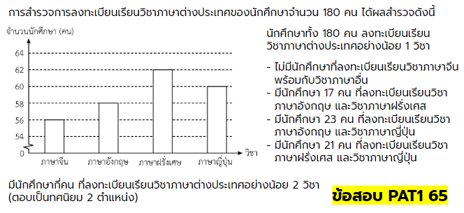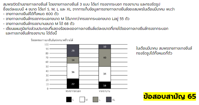 จากสถิติข้อสอบปี 64 และ 65 จะพบว่ามีโจทย์บางข้อที่นำเสนอข้อมูลออกมาในรูปแบบแผนภูมิ หรือกราฟ ซึ่งหากน้อง ๆ สามารถอ่านและตีความข้อมูลจากแผนภูมิหรือกราฟได้ โจทย์เหล่านั้นก็จะกลายเป็นโจทย์ธรรมดาที่น้อง ๆ เคยเห็นบ่อย ๆ และเป็นโจทย์ที่ไม่ยาก ไม่ควรพลาดคะแนนจากข้อเหล่านี้