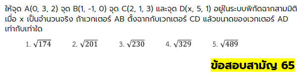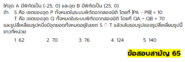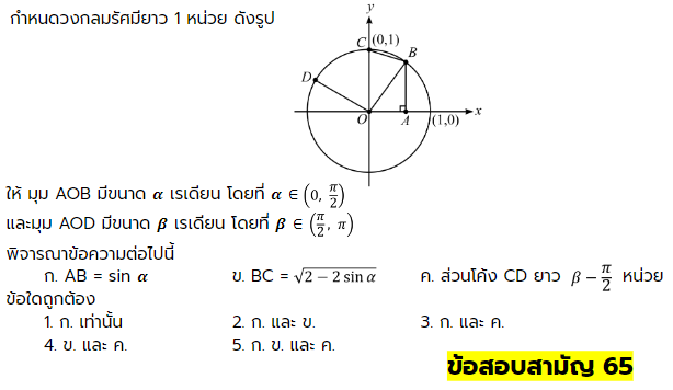 ตัวอย่างเฉลยข้อสอบ คณิตศาสตร์ วิชาสามัญปี 2565
