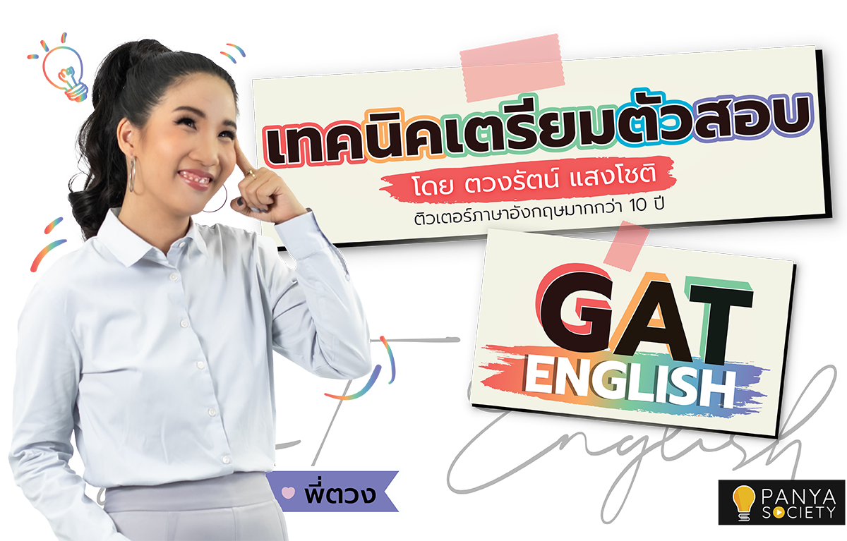 สุดท้ายนี้ข้อสอบ GAT English มีน้ำหนักมากในการสอบเข้ามหาวิทยา ดังนั้นการฝึกทำข้อสอบเก่าอย่างสม่ำเสมอ เเละมีประสิทธิภาพ จะช่วยให้เราสามารถได้คะเเนนที่ต้องการได้อย่างเเน่นอน ขอให้น้อง ๆ โชคดีในการสอบเข้าคณะที่มุ่งหวัง และถ้าเกิดใครที่ยังไม่มั่นใจในการเตรียมสอบ GAT English ครูตวงแห่ง Panya Society มีคอร์ส “GET GAT English” มาช่วยเพิ่มคะแนนให้ได้ถึง 80-100 คะแนน up ให้ติดคณะที่ใฝ่ฝัน ด้วยทักษะภาษาอังกฤษที่เตรียมพร้อมเข้าสู่รั้วมหาวิทยาลัยได้อย่างสบาย พร้อมเทคนิคช่วยทำข้อสอบเพียบ กับข้อสอบทุกสไตล์ ครบทุกพาร์ทใน GAT English มีรวบรวมไว้แล้วในคอร์สนี้ ห้ามพลาด!